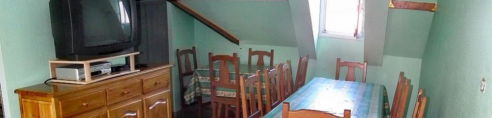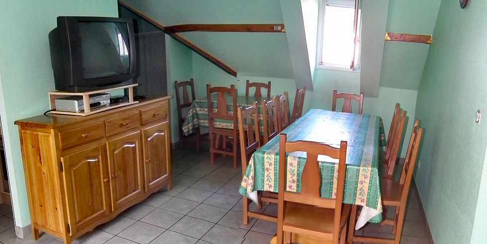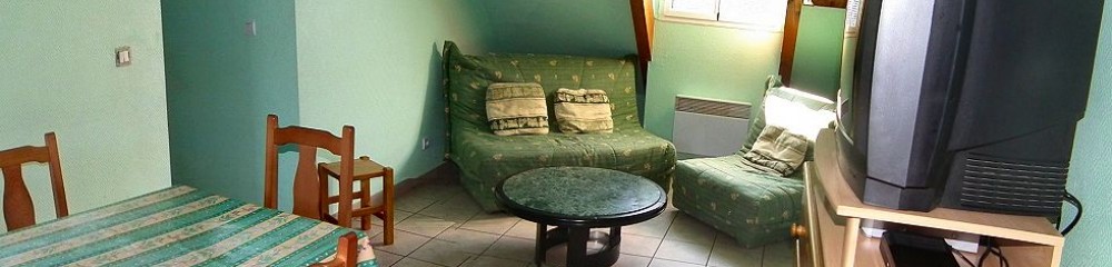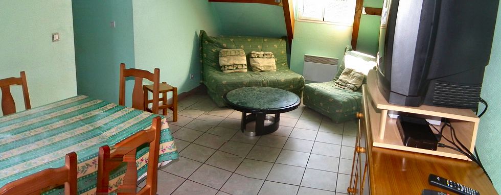 1 Séjour  combles avec 2 canapés BZ pour 1 et 2 personnes, TV, Magnétoscope, Table, Chaises, Placards