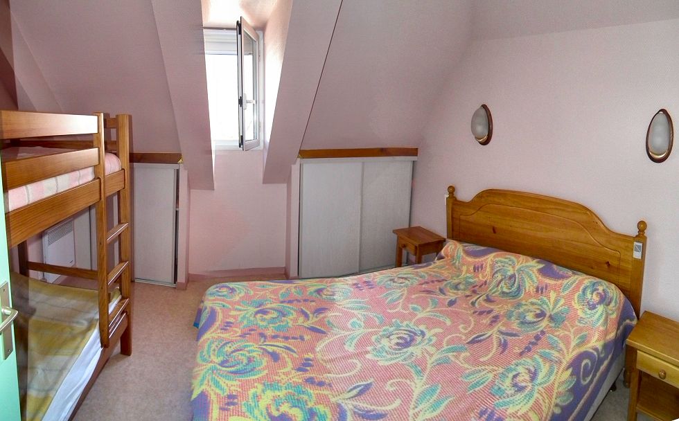 1 Chambre  avec 1 lit 2 personnes, 1 lit superposé 2 personnes, Table de chevet, Placards